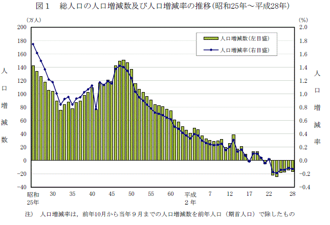 然而日經(jīng)新聞指出,勞動(dòng)力人口的下降是不大可能扭轉(zhuǎn)的——換句話說(shuō),生育率一旦下來(lái)了就不太可能再回去。的確,日本人口早在10年前就已經(jīng)進(jìn)入自然人口衰退,而且自然減少的人口數(shù)目逐年擴(kuò)大。